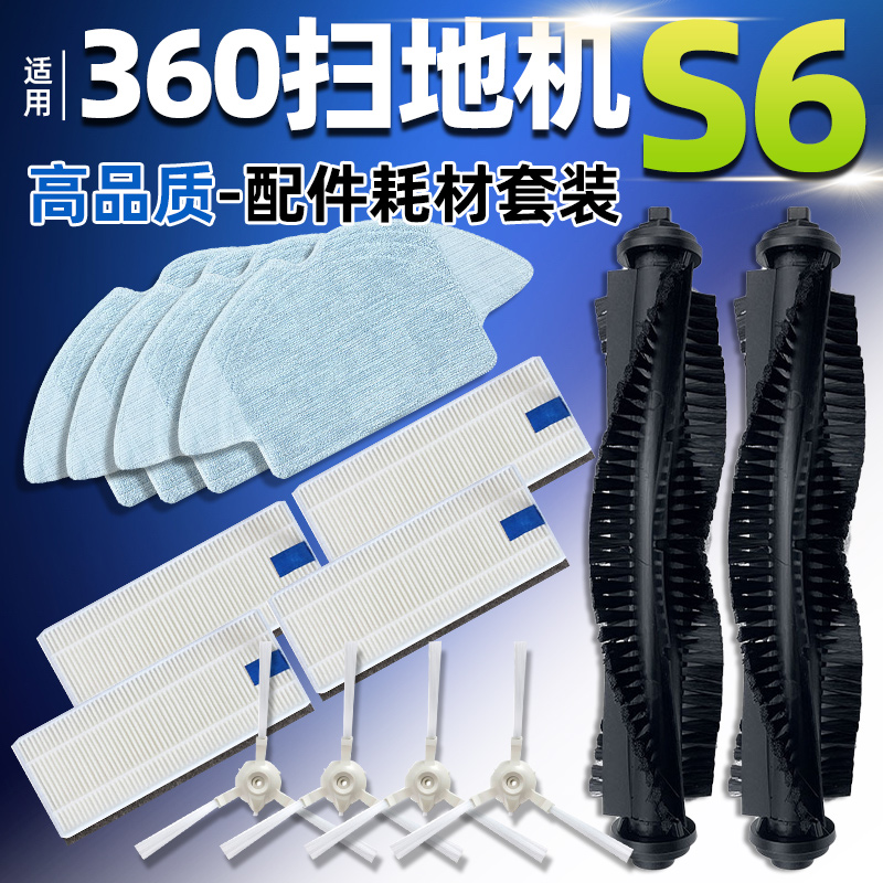 适配360扫地机器人S6配件水洗过滤网芯海帕边刷主滚刷拖抹布耗材