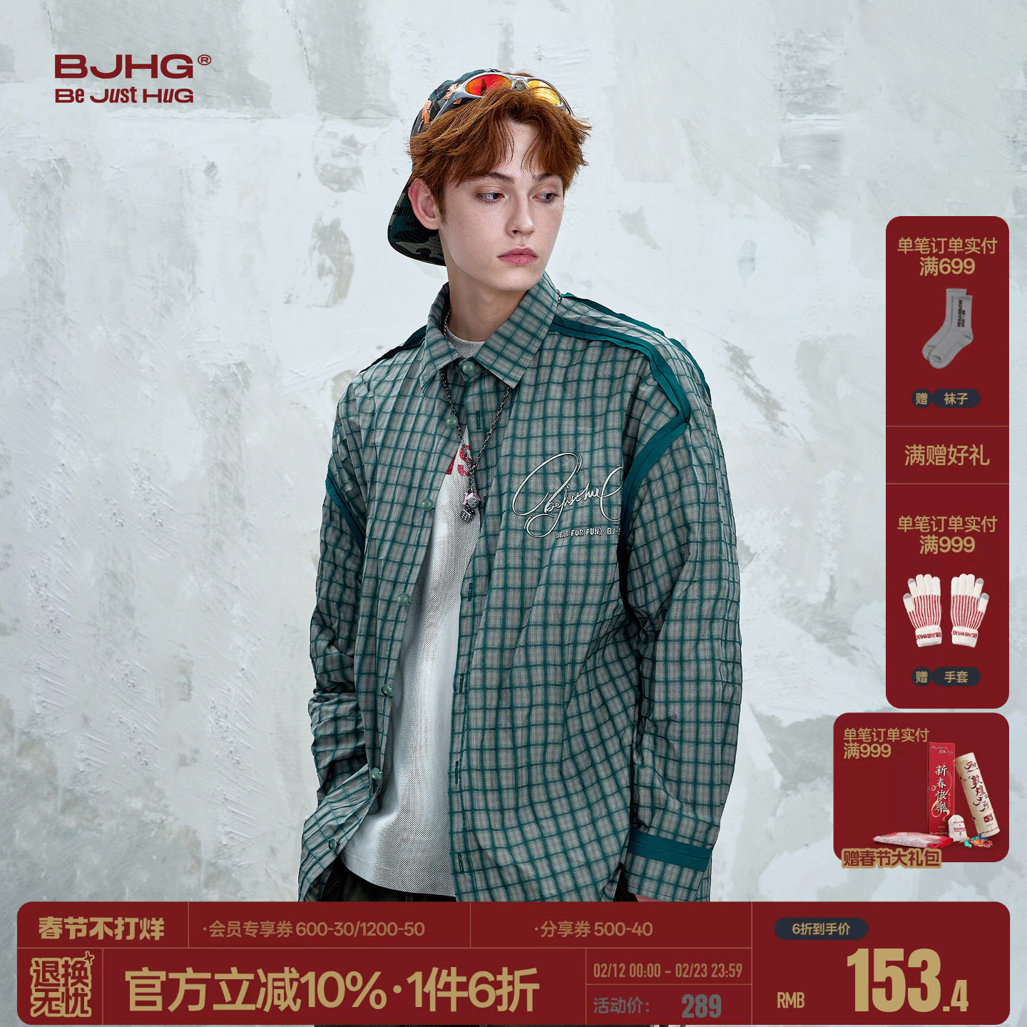 BJHG不计后果复古格子衬衫男款春秋2025新款美式宽松舒适衬衣外套