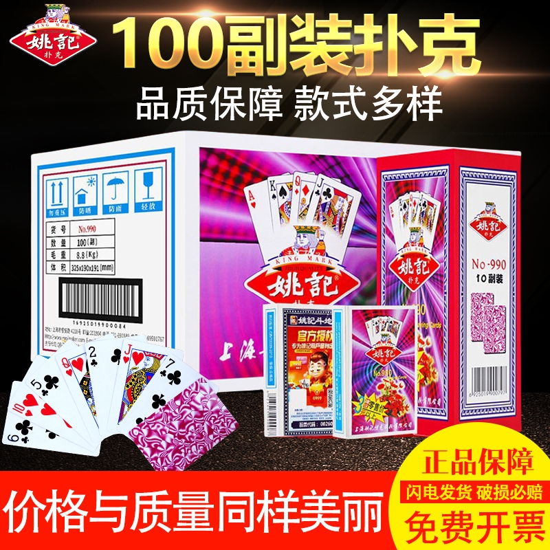 整箱100副批发姚记扑克牌正品官方旗舰店高质量加厚加硬纸牌 990
