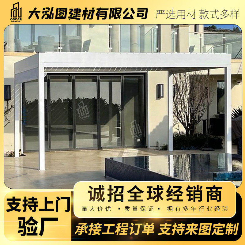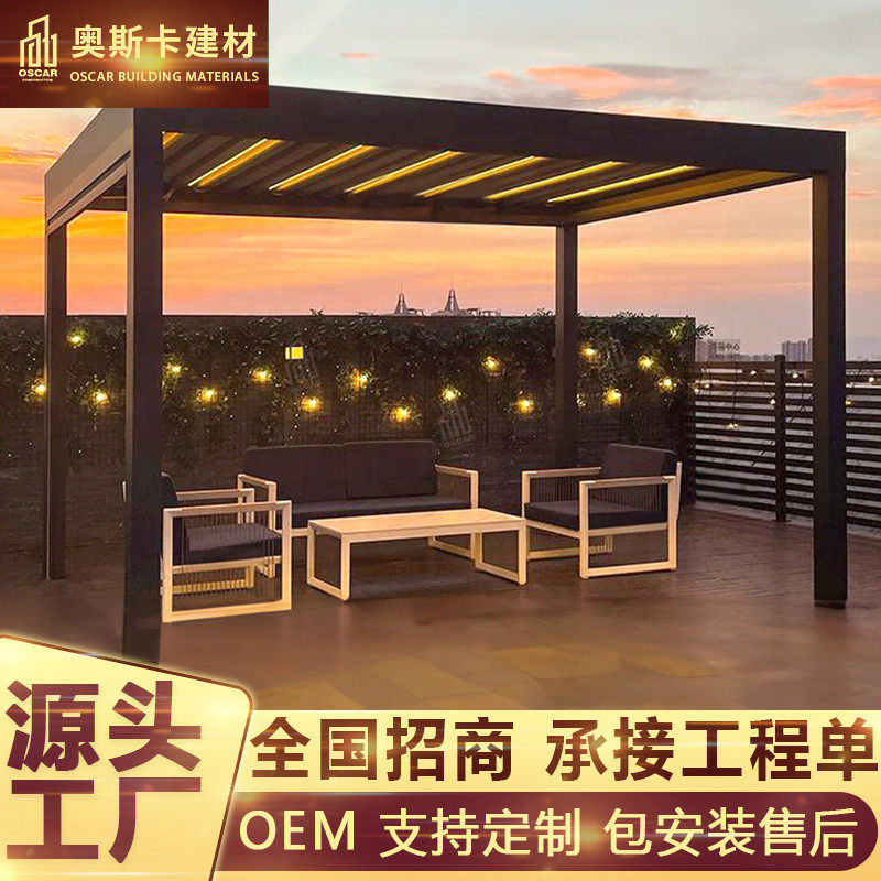 酒店现代中式翻转百叶凉亭防腐木铝合金凉亭新中式伸缩直销封闭棚