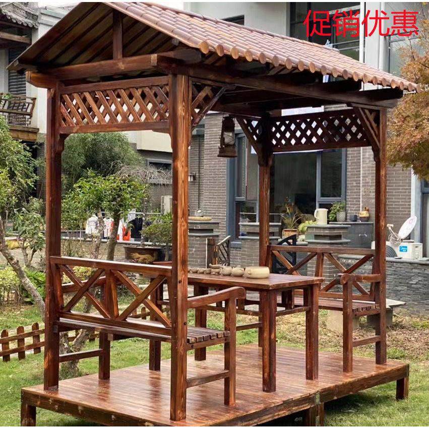 户外庭院凉亭防腐木小屋休闲座椅室外别墅花园布置小亭子木头椅子