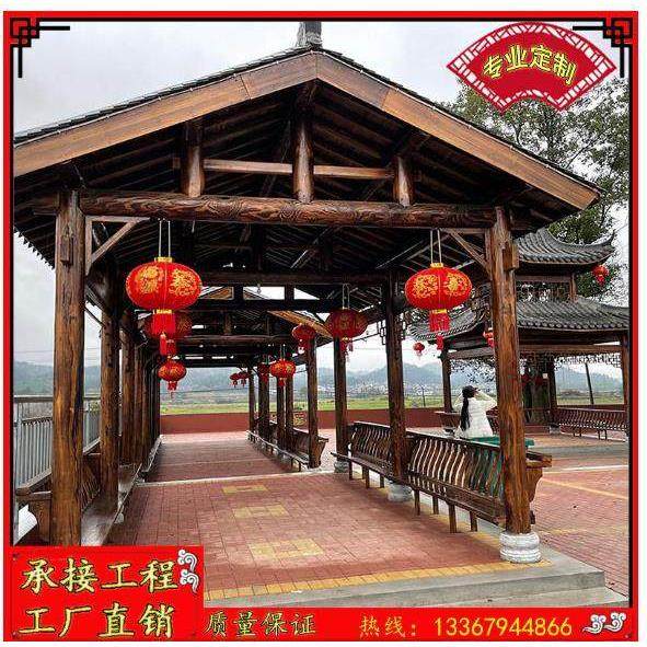 户外古建文化长廊凉亭防腐木室外葡萄架走廊景观庭院别墅木屋亭子