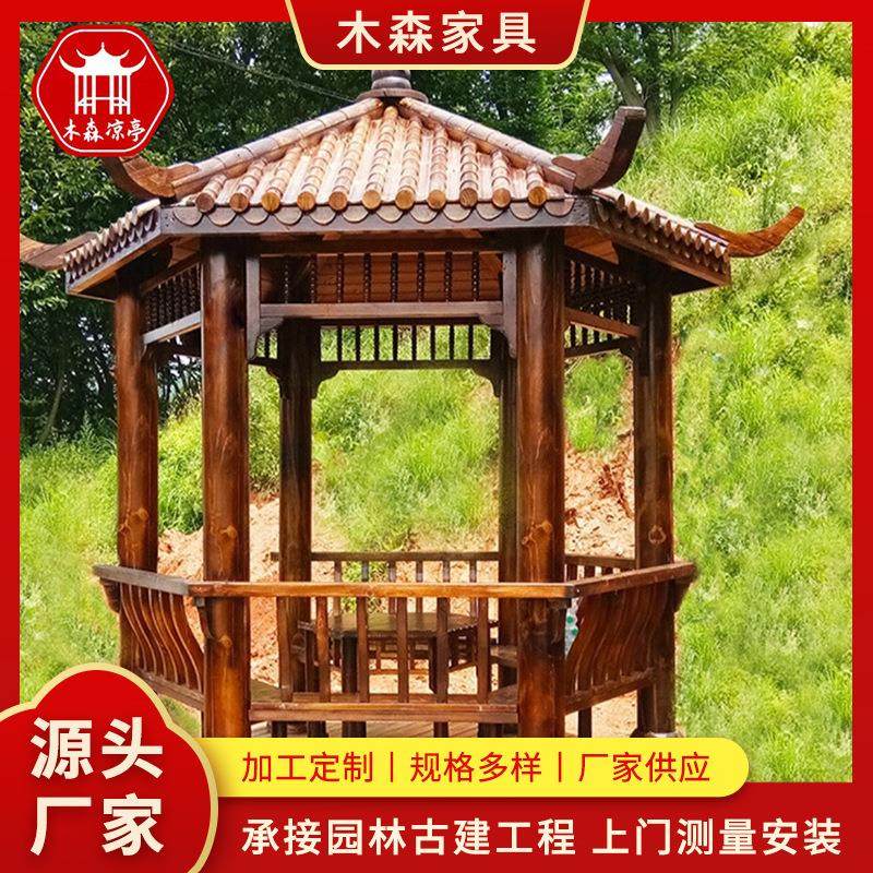 户外凉亭防腐木四角六角公园定制景观别墅庭院休闲彷古碳化实木亭