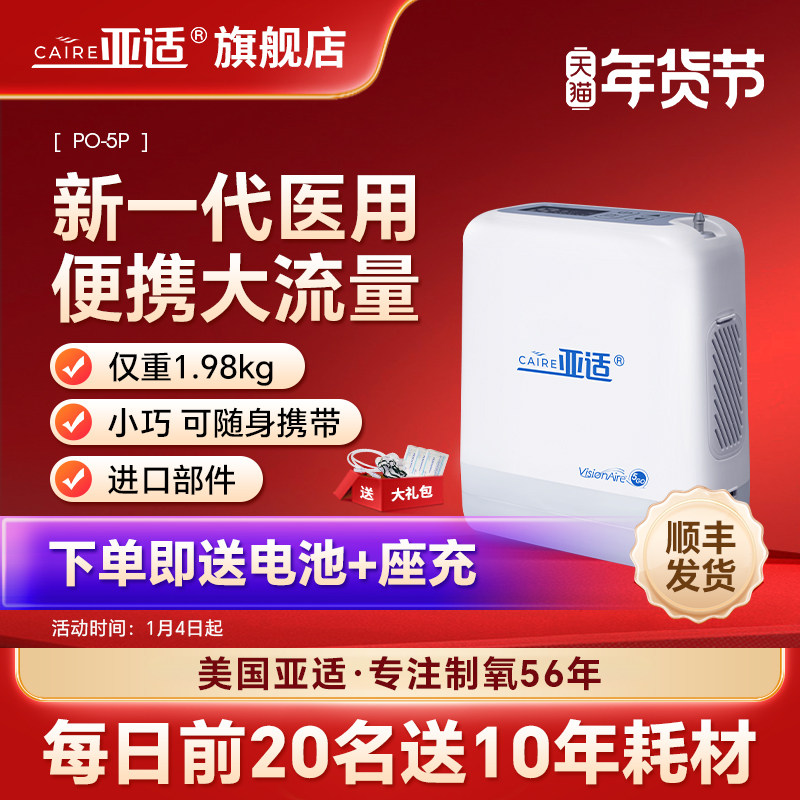 美国亚适便携式制氧机小型老人家用进口氧气机5档随身户外吸氧机