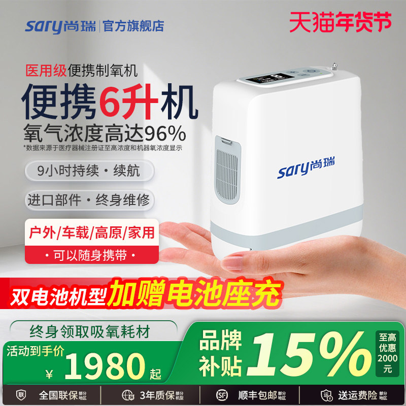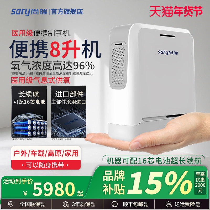 尚瑞便携式制氧机家用老人随身小型医用级吸氧机车载大流量吸氧机