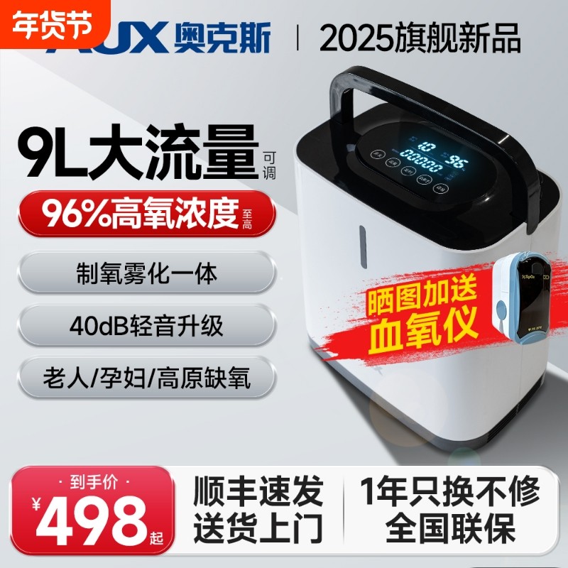 奥克斯9L家用制氧机老人吸氧机孕妇氧气机雾化小型便携式车载高原