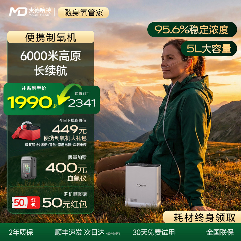 麦德哈特便携式制氧机随身小型老人家用车载高原专用便携式吸氧机
