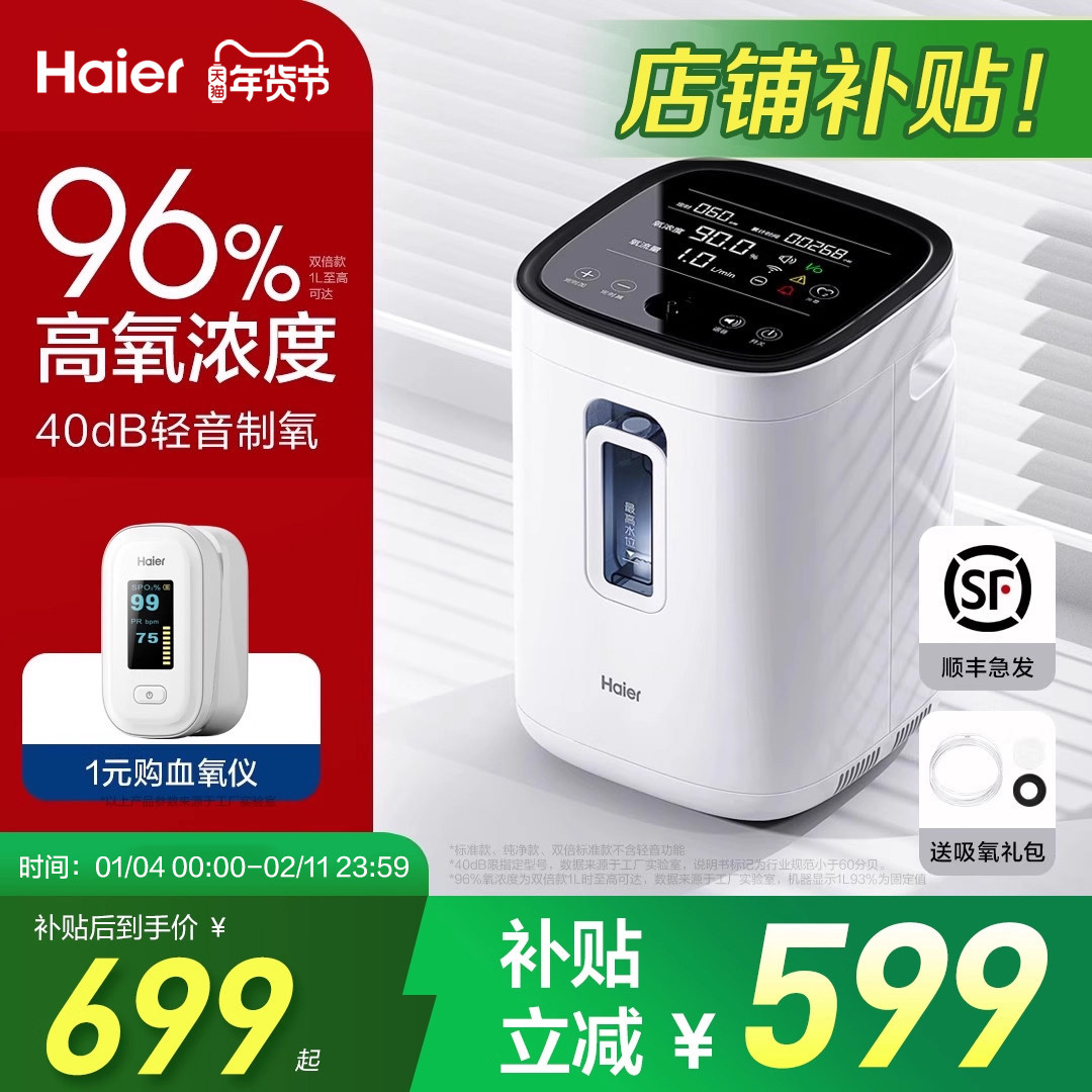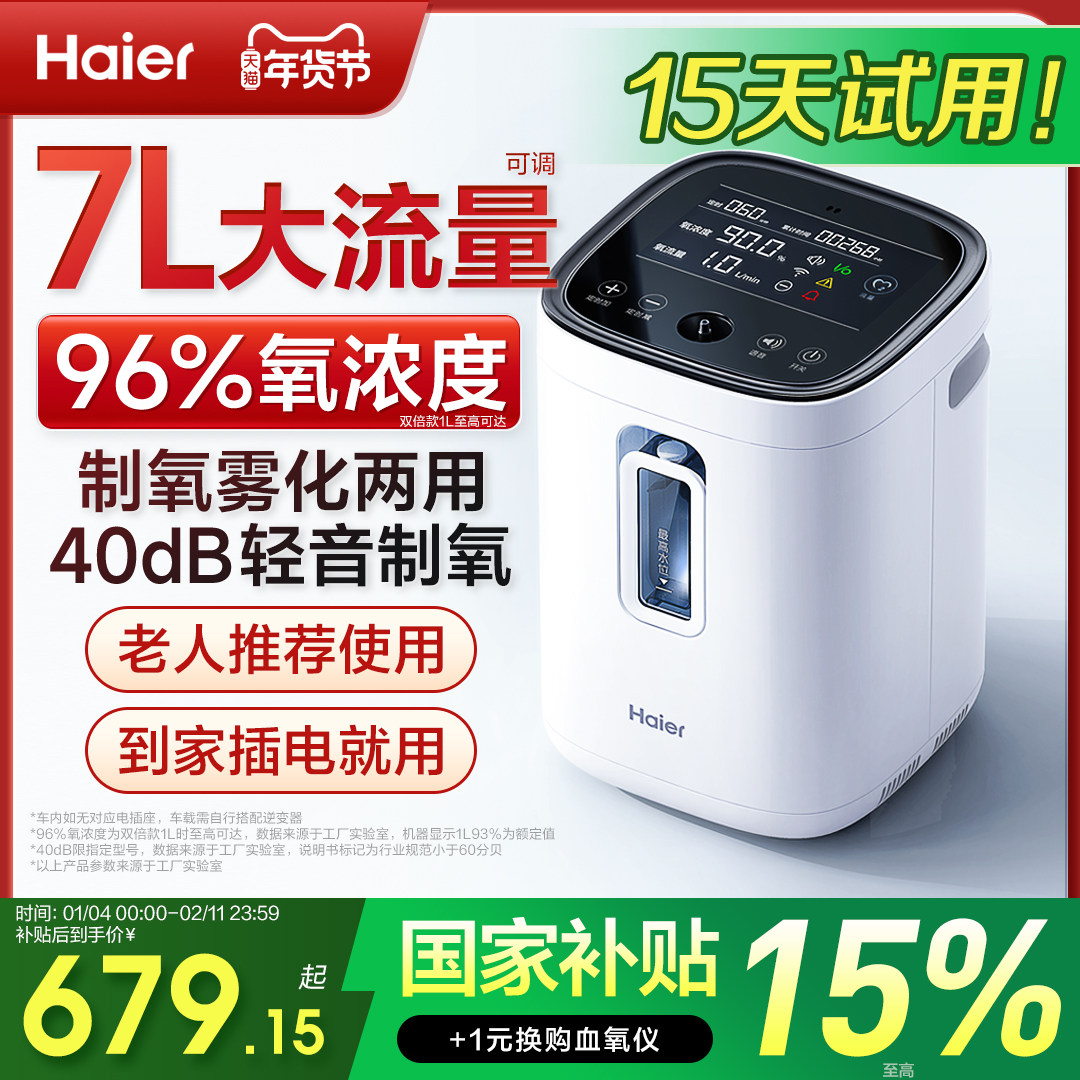 海尔制氧机家用老人孕妇吸氧家庭雾化呼吸氧气小型高原车载便携式