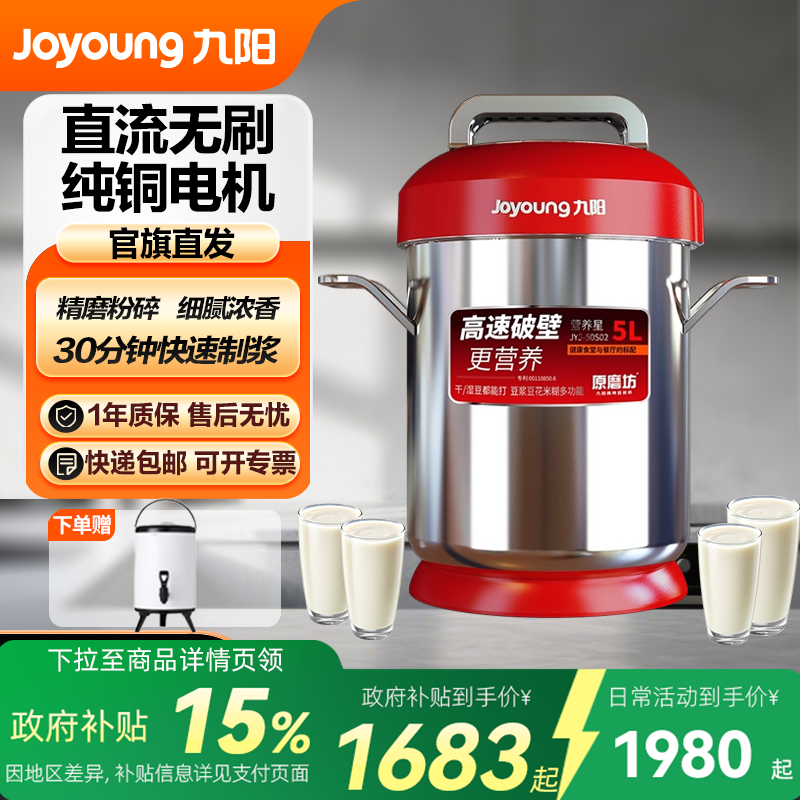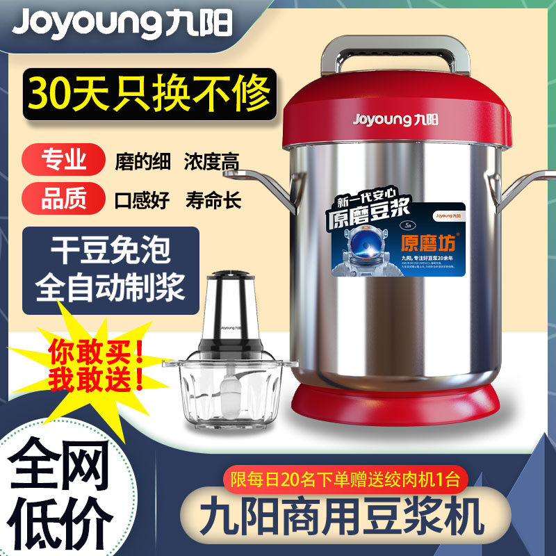 九阳商用豆浆机早餐店用5L大容量免煮全自动大型破壁磨浆机大功率