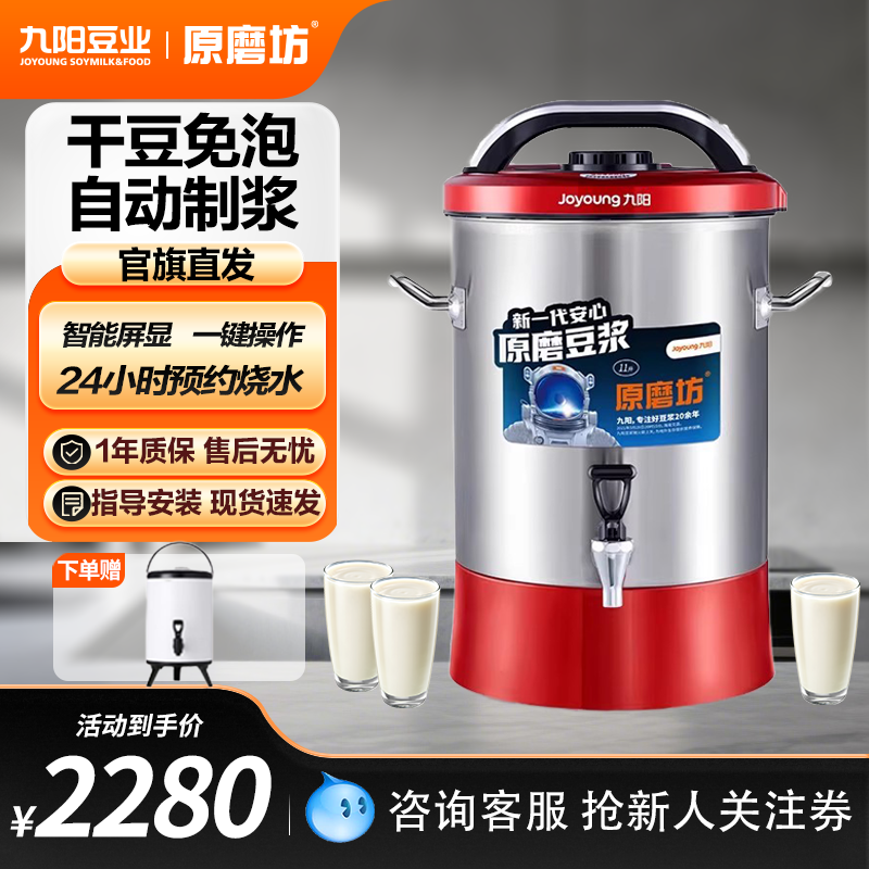 【官方直营】九阳商用豆浆机11升大容量免滤干豆现磨一键制浆YK11
