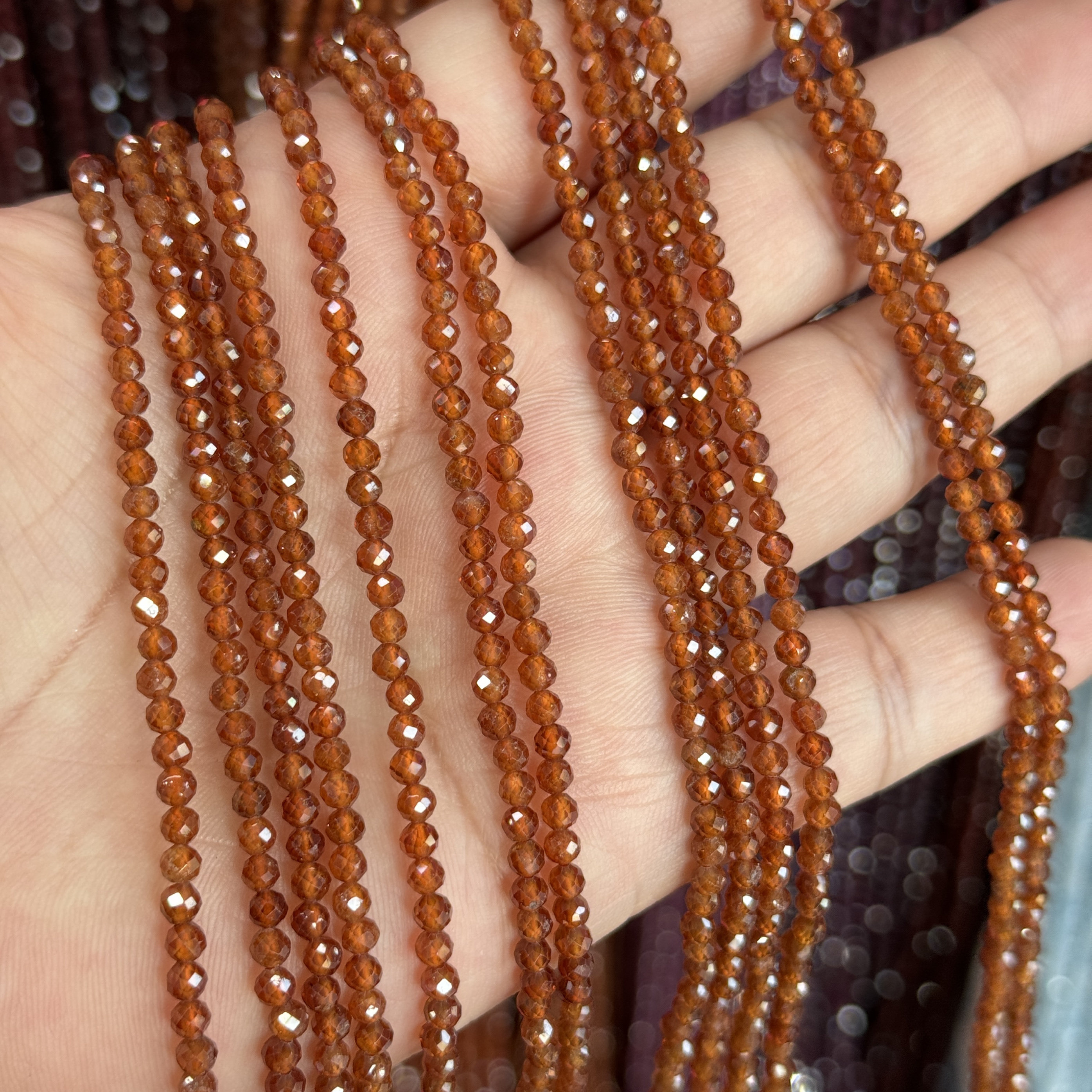 2-3-4mm天然橙石榴石切角圆珠散珠半成品DIY项链手链饰品配珠