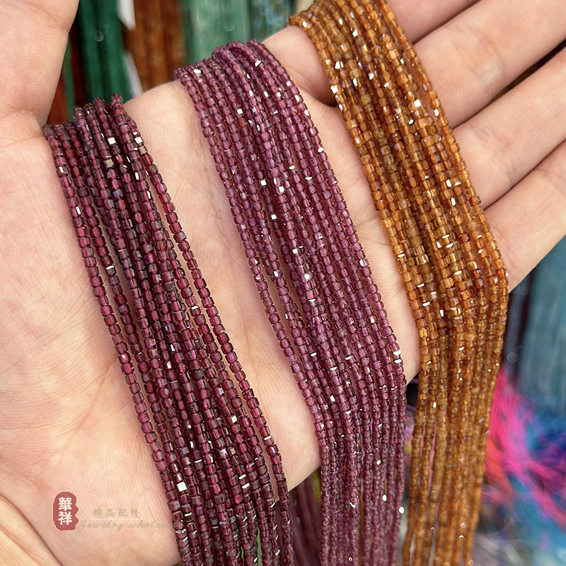 天然石榴石散珠小方糖切面珠子diy手链手串隔珠手工串珠配件批发