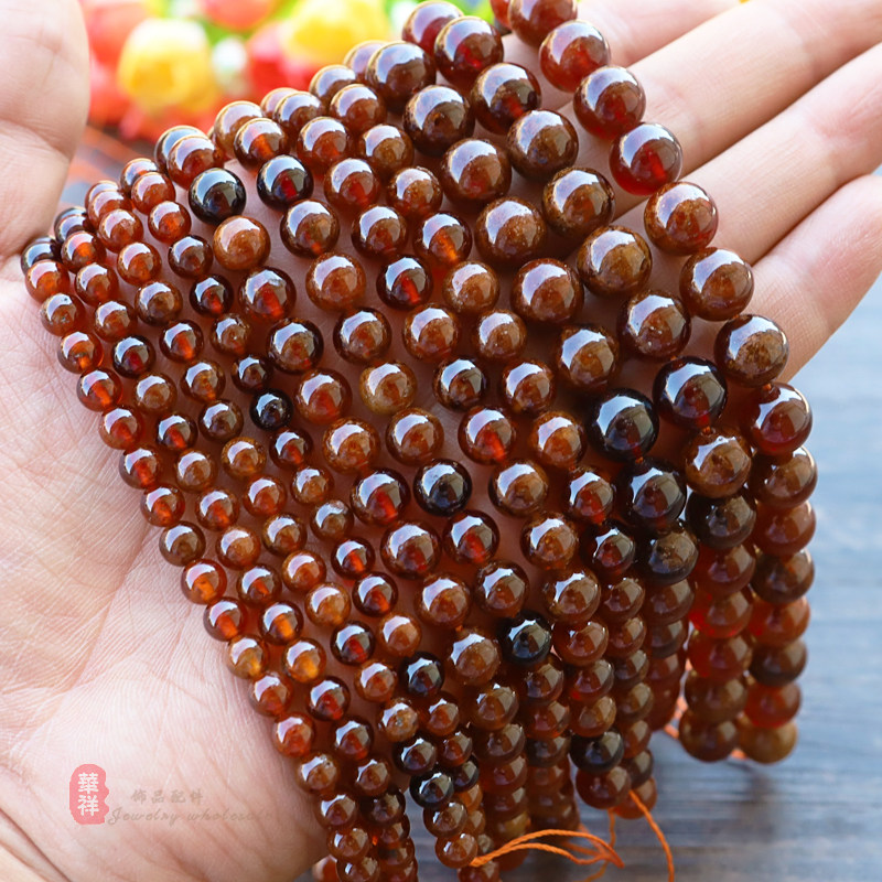 天然石榴石散珠 4-12mm石榴石圆珠 DIY手工手链项链隔珠材料配件
