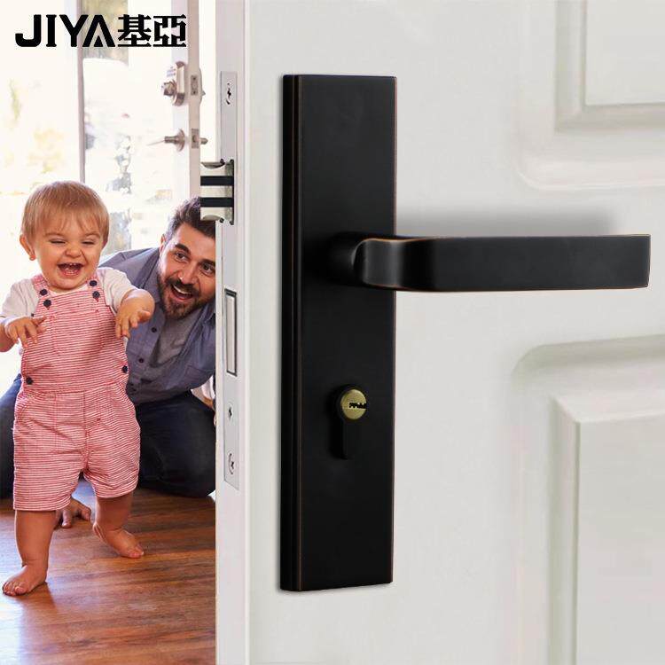 基亚美式现代黑色静音门锁房门锁锌合金室内门锁室内木门执手锁具