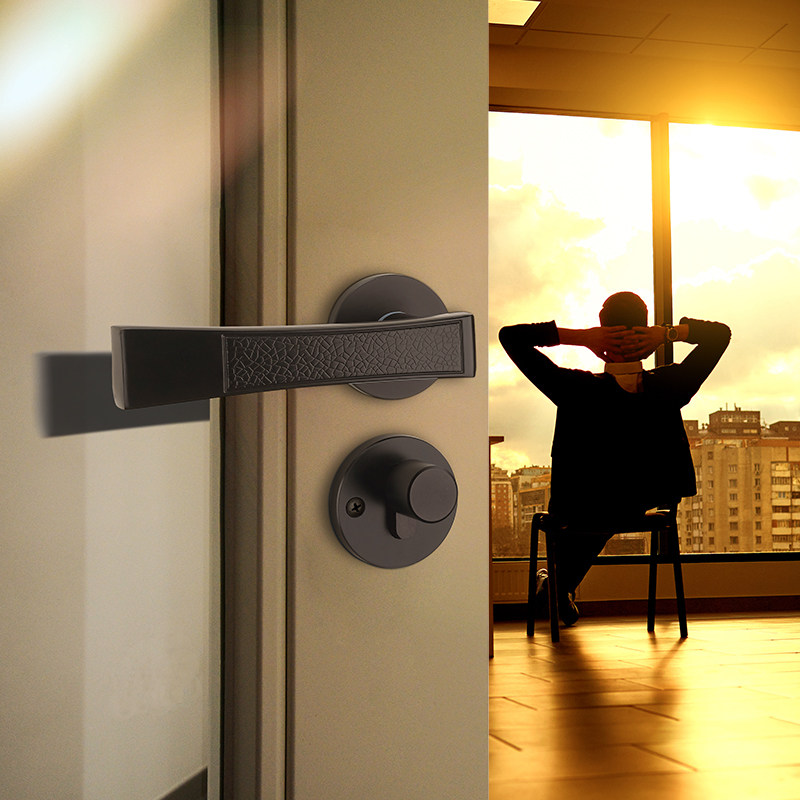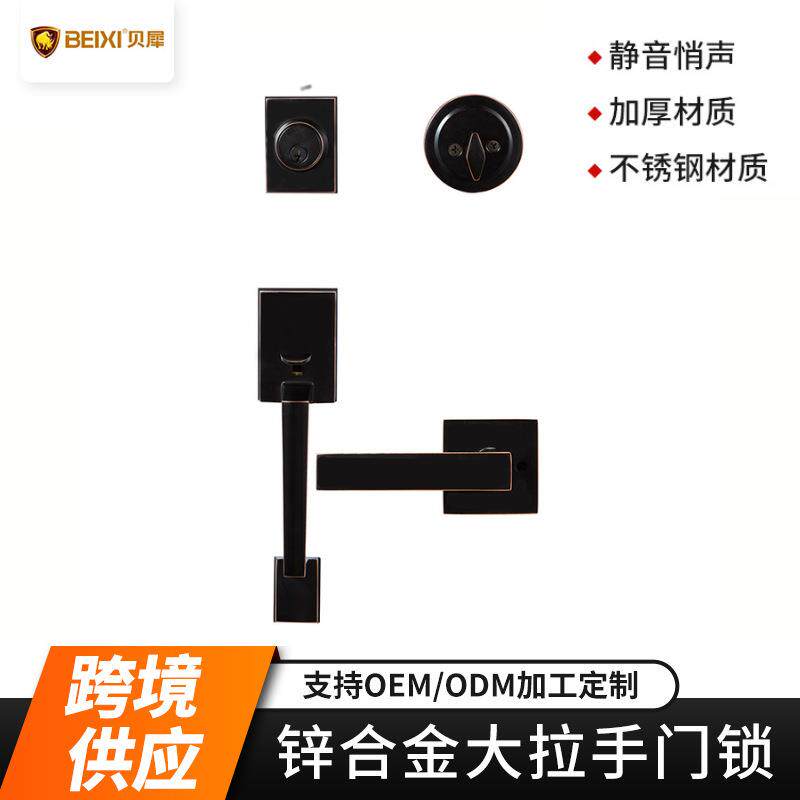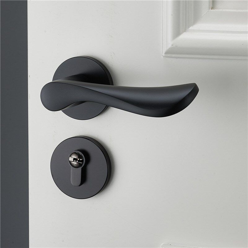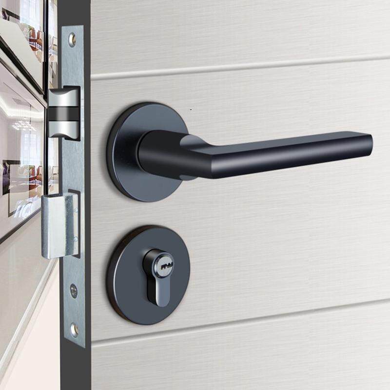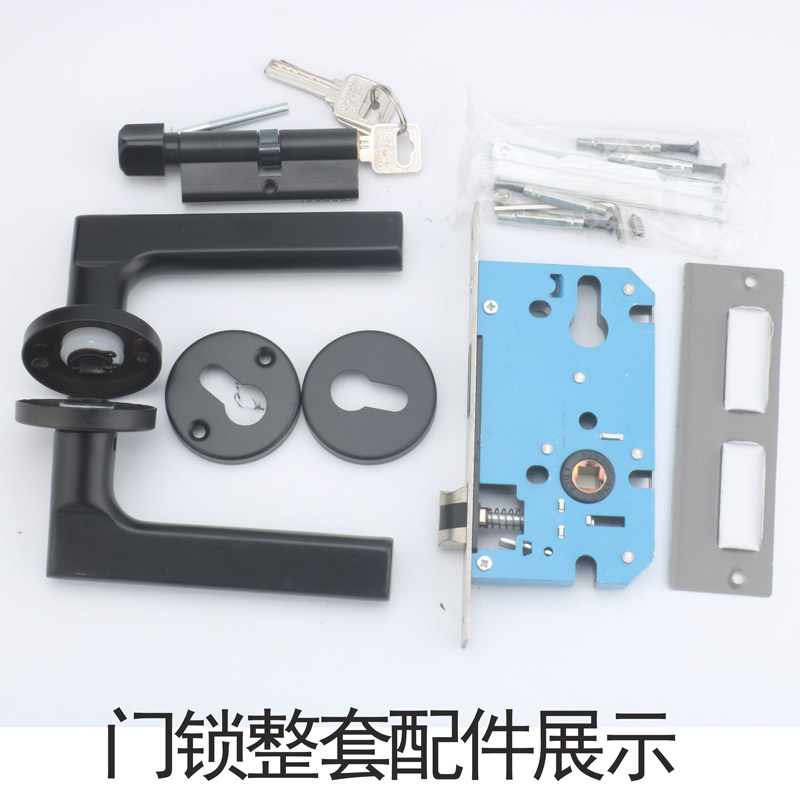 锁具室内家用静音锁黑色美式分体磁吸锁手柄门把手门拉手锁芯门锁