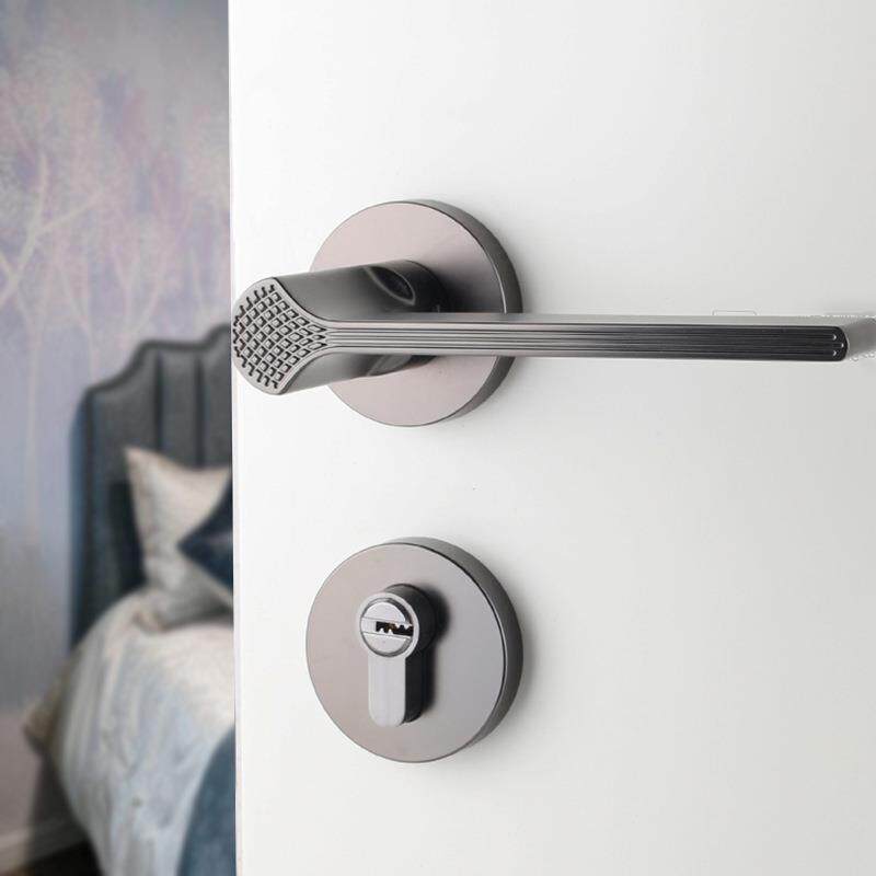 美式房门锁轻奢滚花门把手卧室门锁室内磁吸静音门锁灰黑色木门锁
