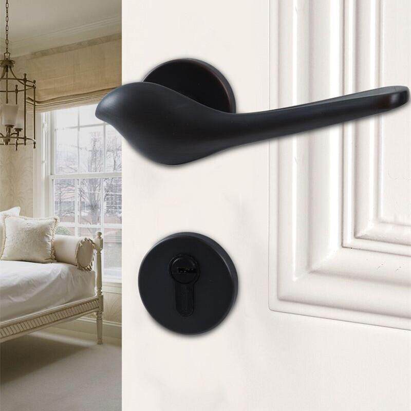 房门锁黑色美式分体执手小鸟锁木门室内门把手卧室门把手静音美式