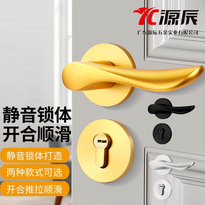 名门静音门锁室内卧室房间木门美式锁具金色黑色门把手机械分体锁