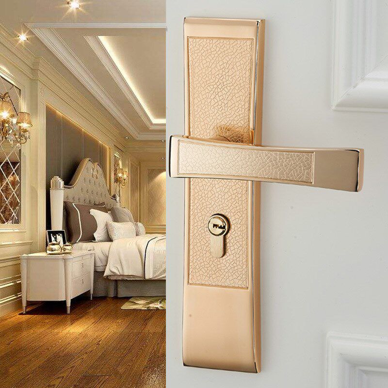 房门美式黑色分体锁双开金色简约北欧室内门锁静音卧室实木门把手