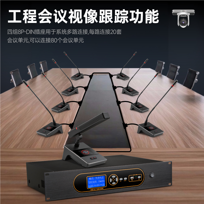 有线手拉手会议系统视像跟踪台式鹅颈话筒会议室双方管短杆麦克风