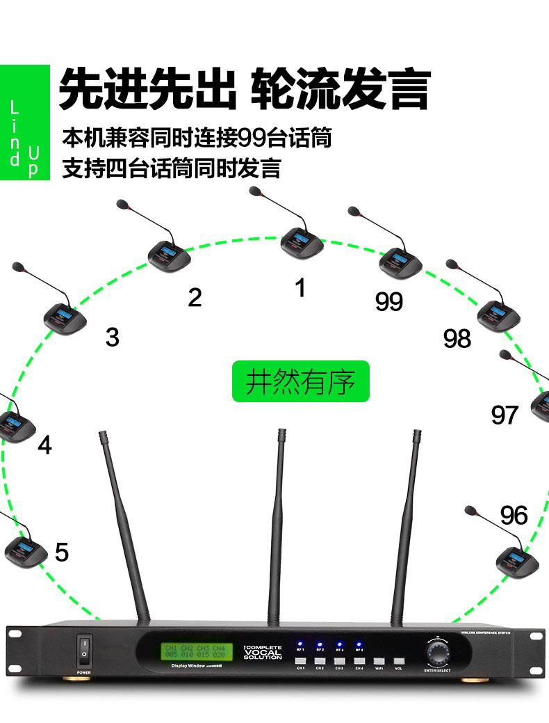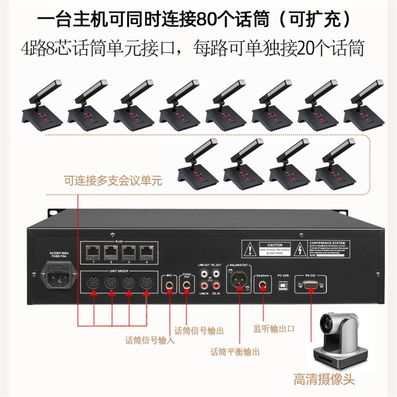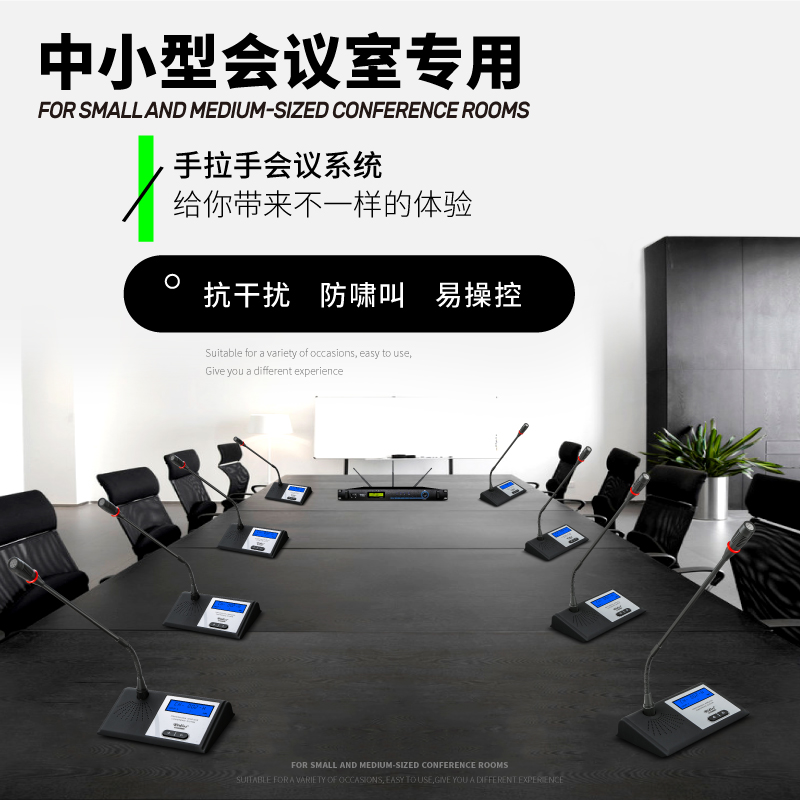 手拉手麦无线会议系统台式话筒防啸叫、抗干扰,可配手持可拖99支