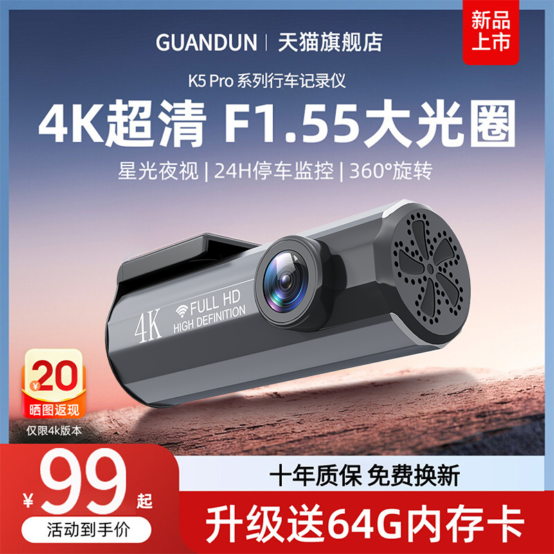 行车记录仪高清夜视360度全景4k超高清前后双录倒车影像APP免安装