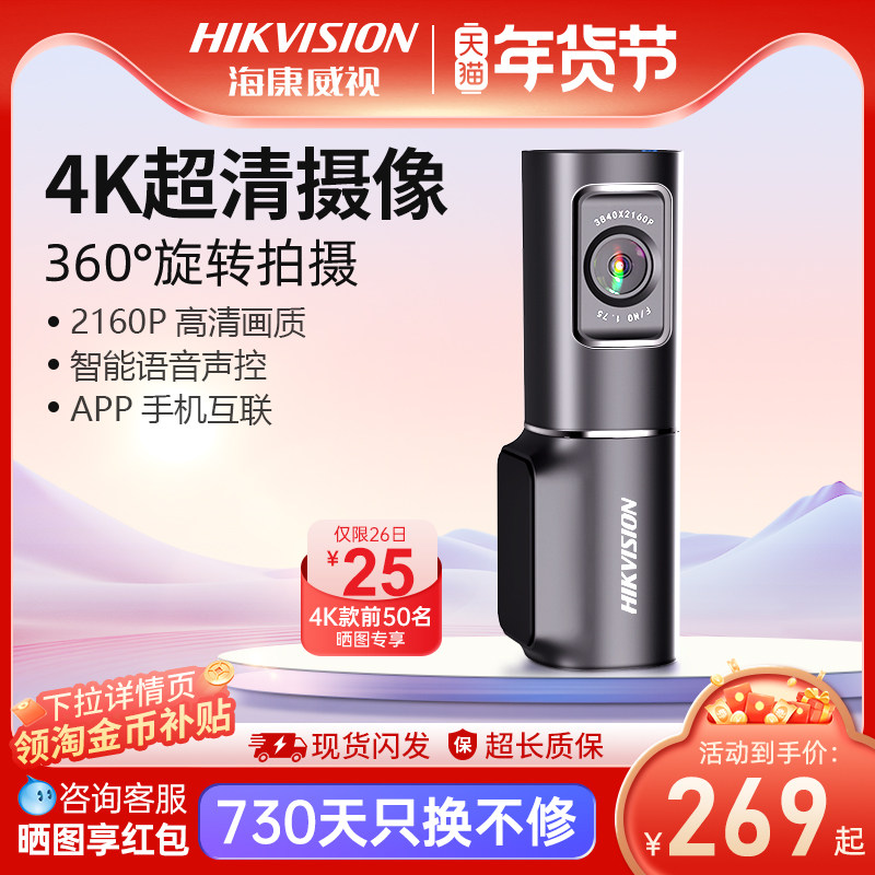 海康威视行车记录仪2025新款2K高清夜视汽车监控D1pro