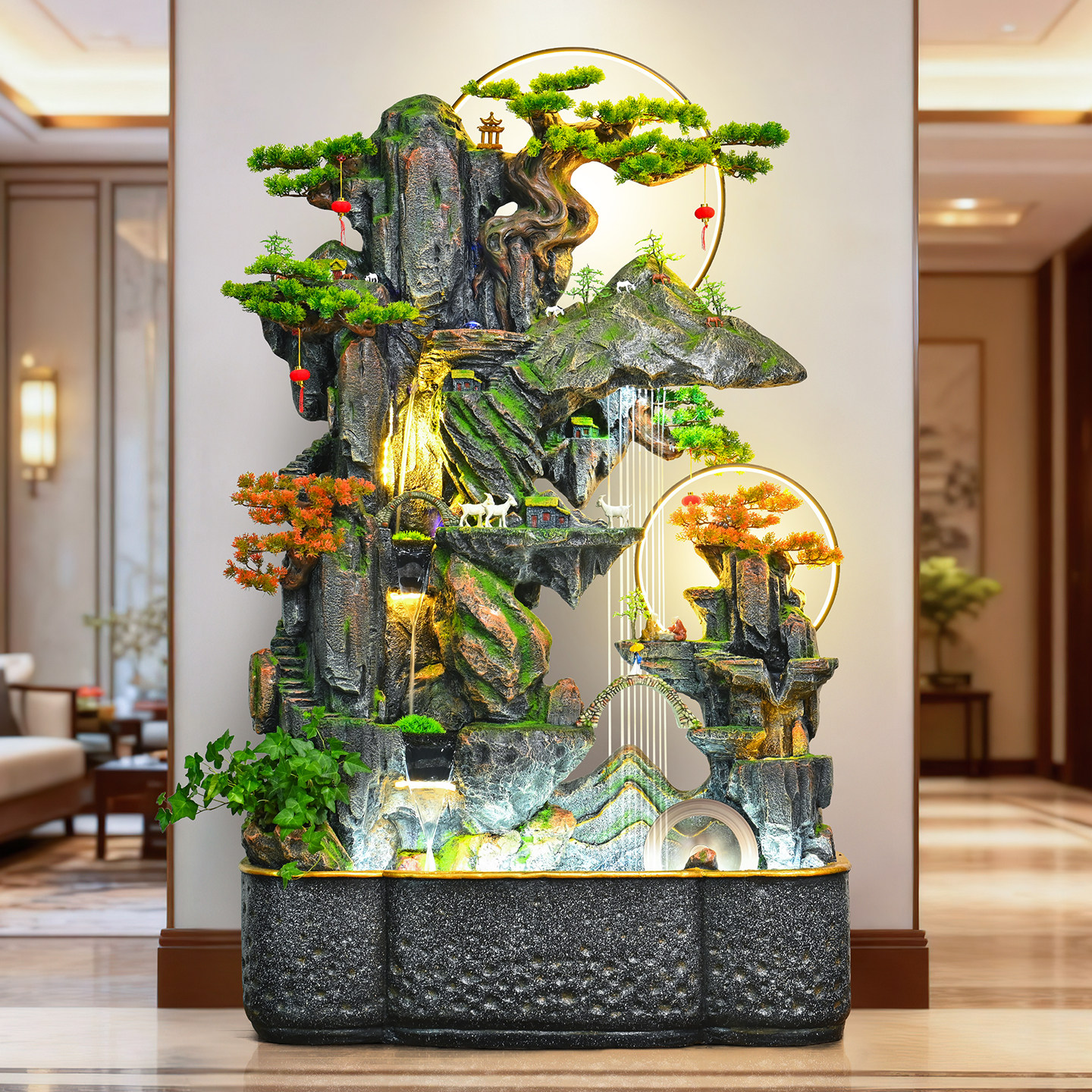 大型假山流水喷泉摆件水车养鱼池客厅室内招财高山水盆景叠水瀑布