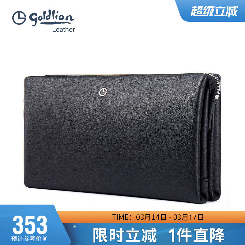 七匹狼手拿包男真皮男包双拉链大容量钱包大牌手包男士休闲潮皮包