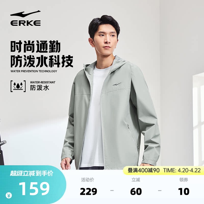 鸿星尔克外套男春季新款男士冲锋运动休闲夹克跑步防风衣爸爸男装