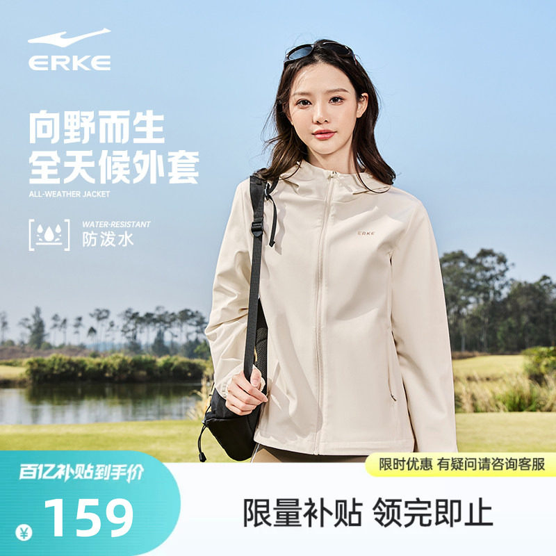 鸿星尔克外套女款春季新款女士修身软壳冲锋防风夹克运动风衣女装