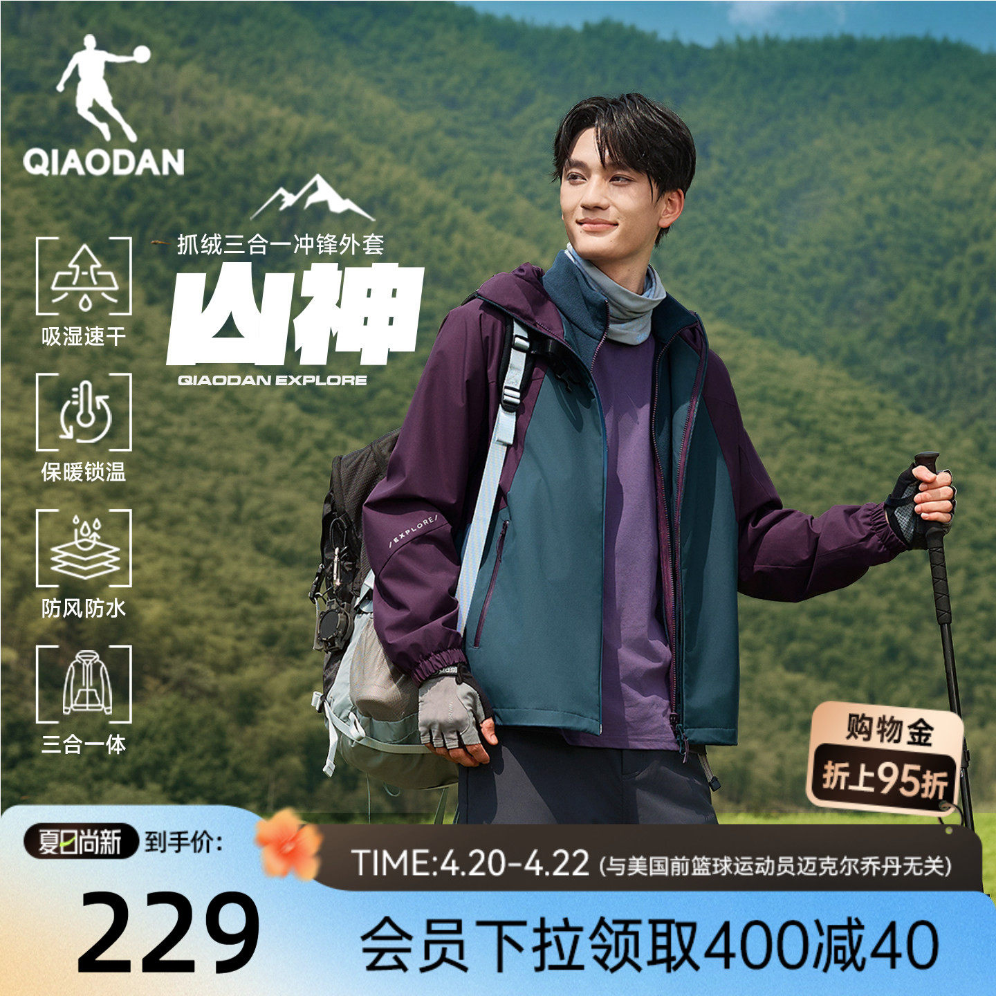 乔丹户外三合一风衣男生2026春季新款保暖防风冲锋外套防泼水登山