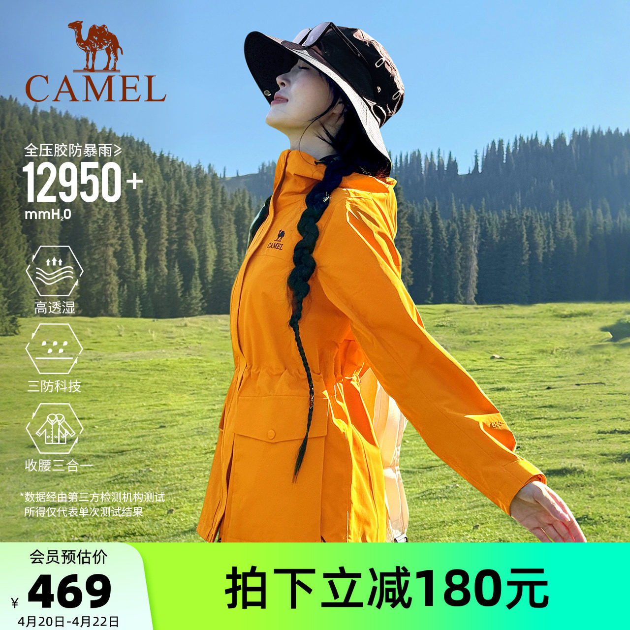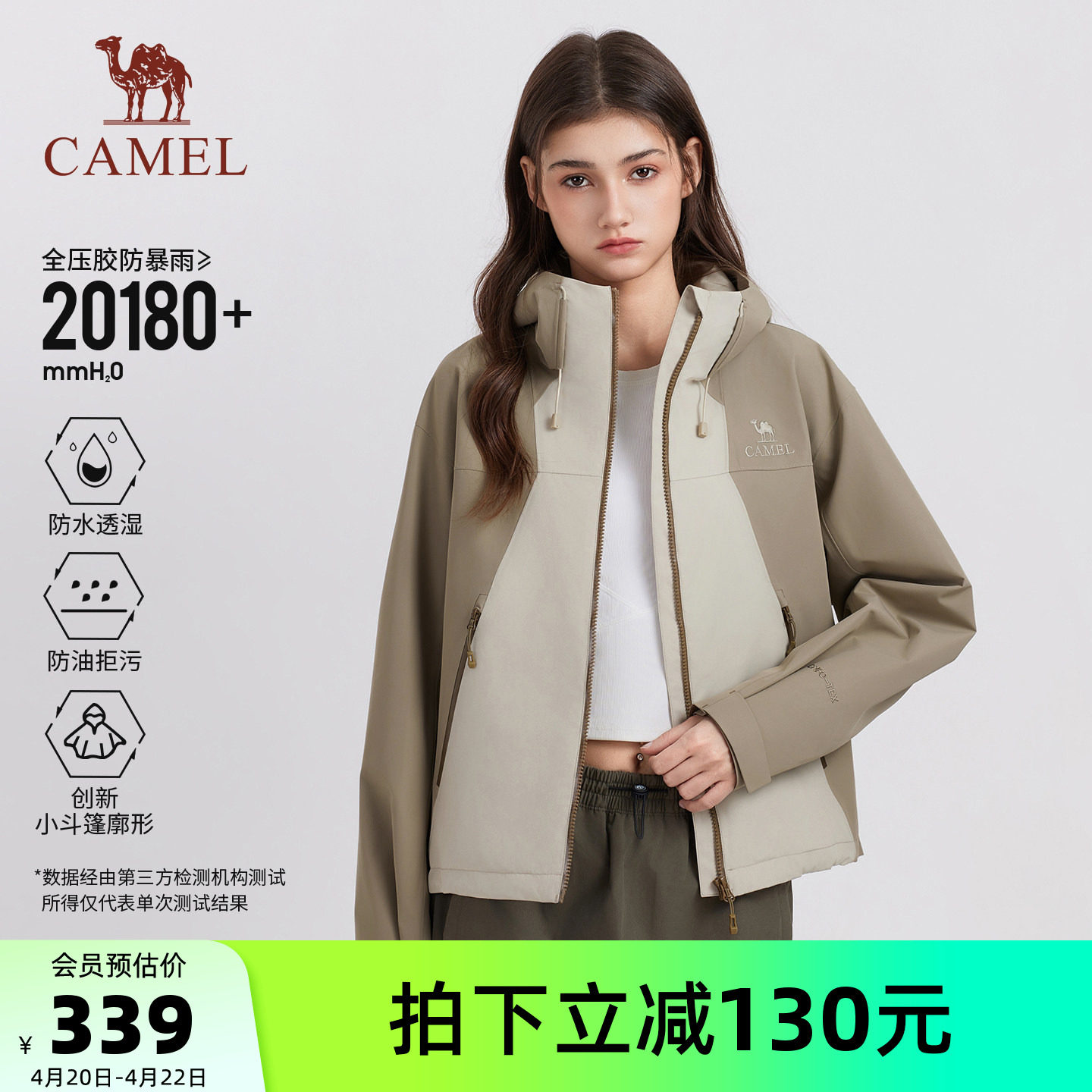 骆驼运动三防外套女2026春季户外休闲防风防水连帽夹克风衣登山服