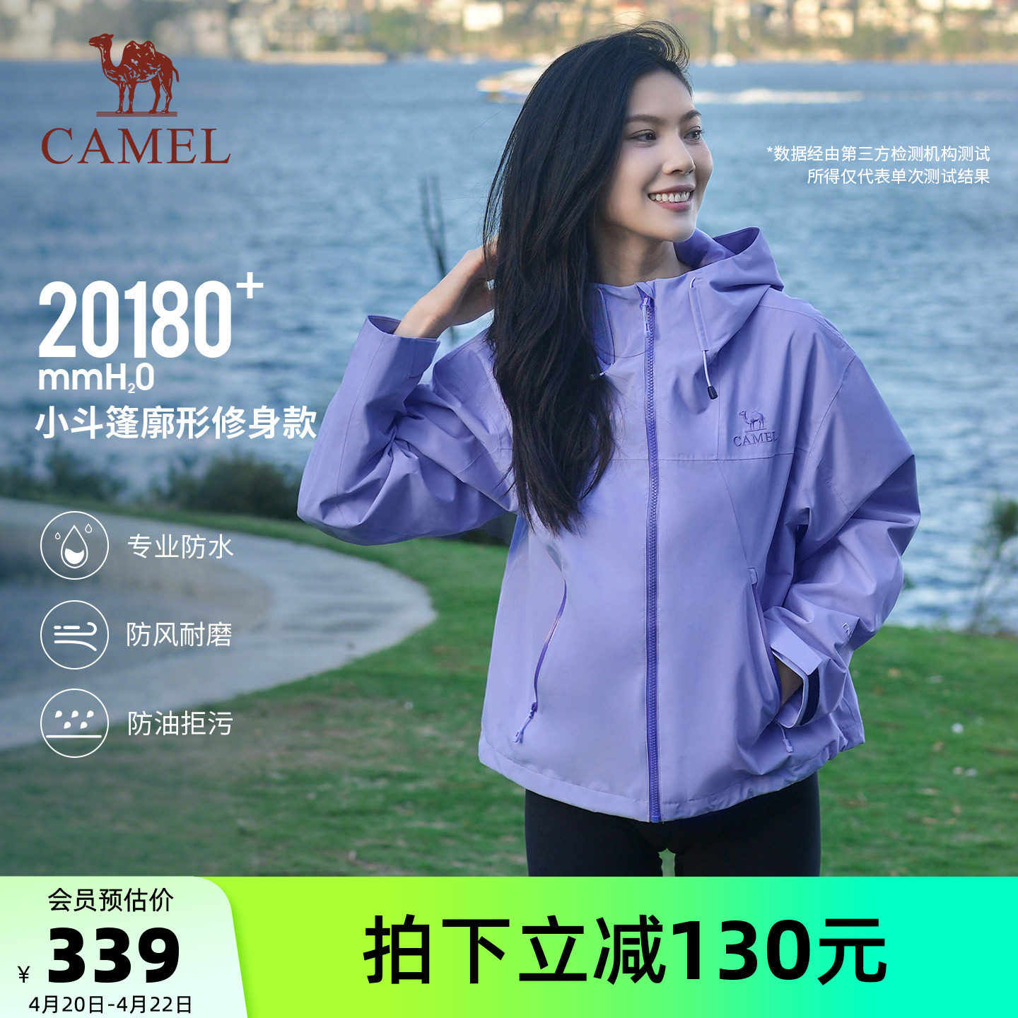 骆驼紫色冲锋衣女小斗篷修身短款外套三防防风防水风衣旅游登山服