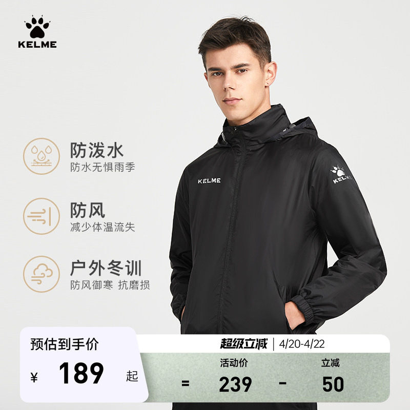 KELME卡尔美运动风衣男足球训练防风雨衣跑步童户外训练外套冲锋