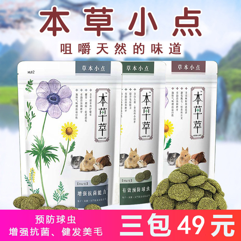 包邮 防球虫 促美毛 增抗菌能力磨牙草饼本草小点80克特价兔龙猫