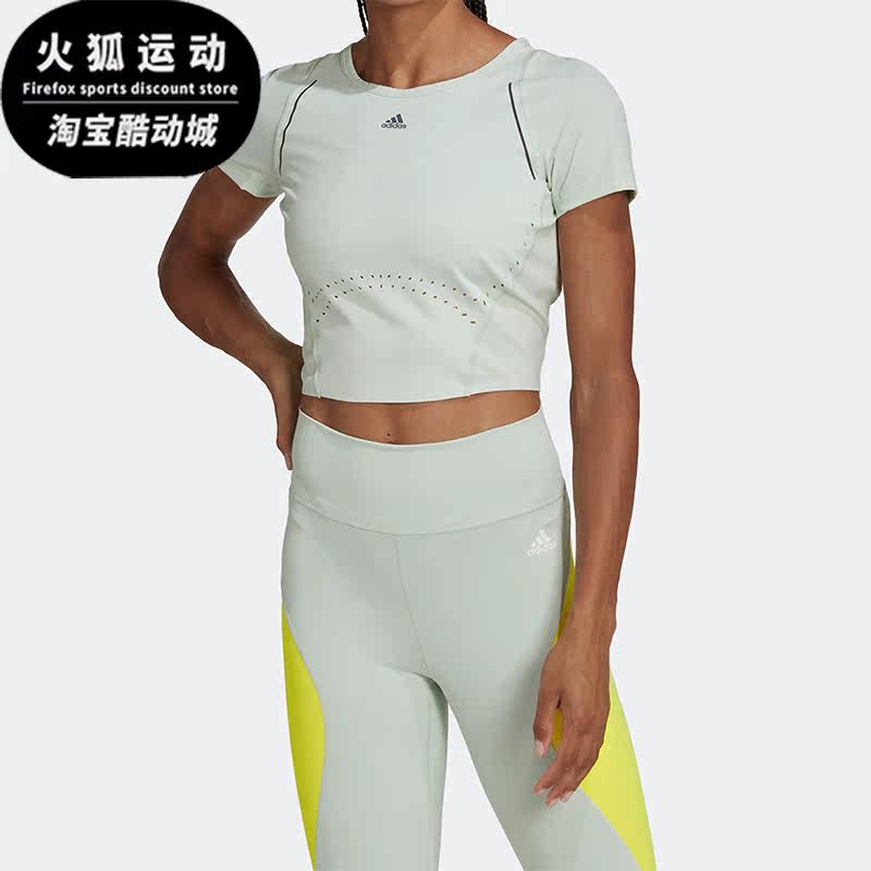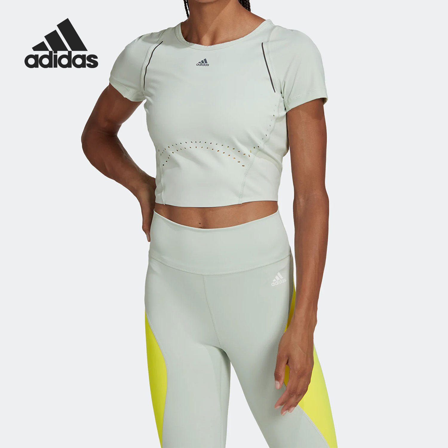 Adidas/阿迪达斯正品新款时尚女子运动训练高腰短款T恤HM8097