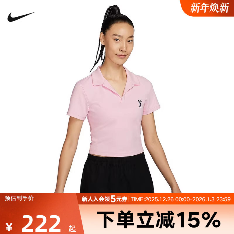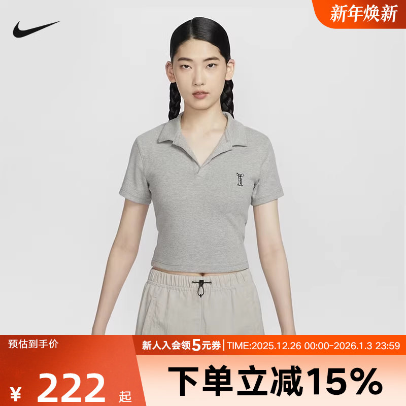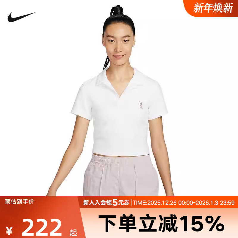 NIKE耐克短袖POLO衫女秋运动休闲露脐辣妹高腰短款t恤HJ6852-100
