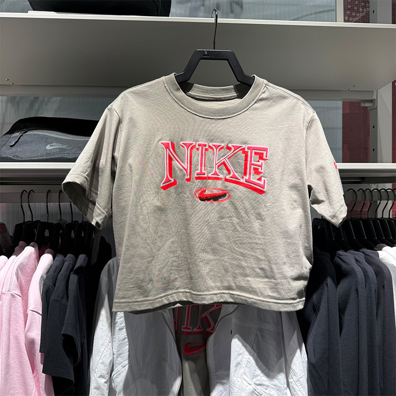 Nike耐克夏季新款短袖女运动休闲圆领宽松高腰短款T恤FZ2856-320