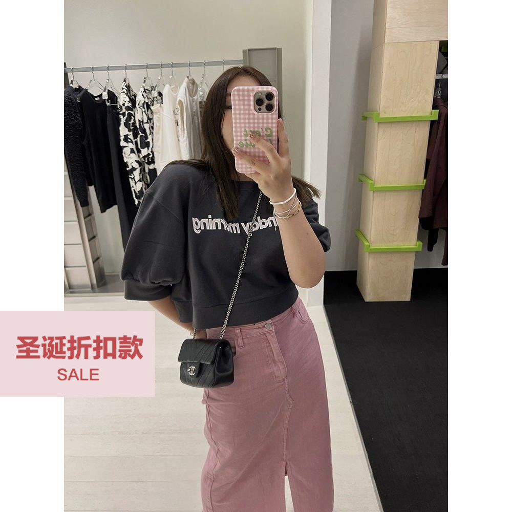 【直播间8折特惠款】街头休闲洋气碳灰短袖字母卫衣女高腰短款t恤