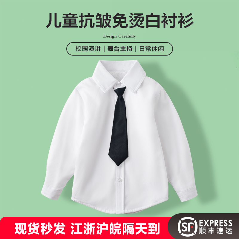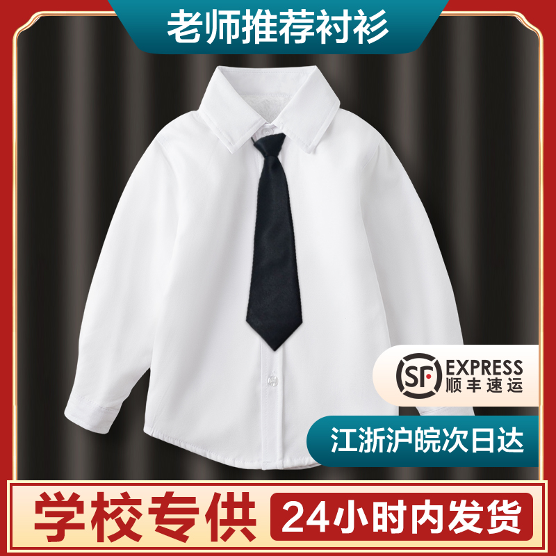 儿童白衬衫男童白色长袖衬衫小学生校服中大童春秋款白衬衣演出服