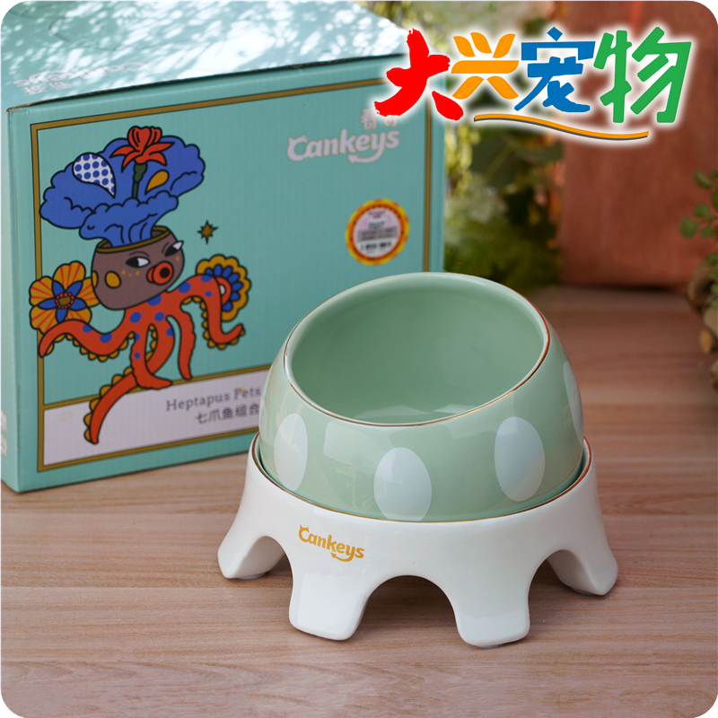 中国 Cankeys看奇 七爪鱼组合陶瓷猫碗●_●保护脊椎の双用途食盆