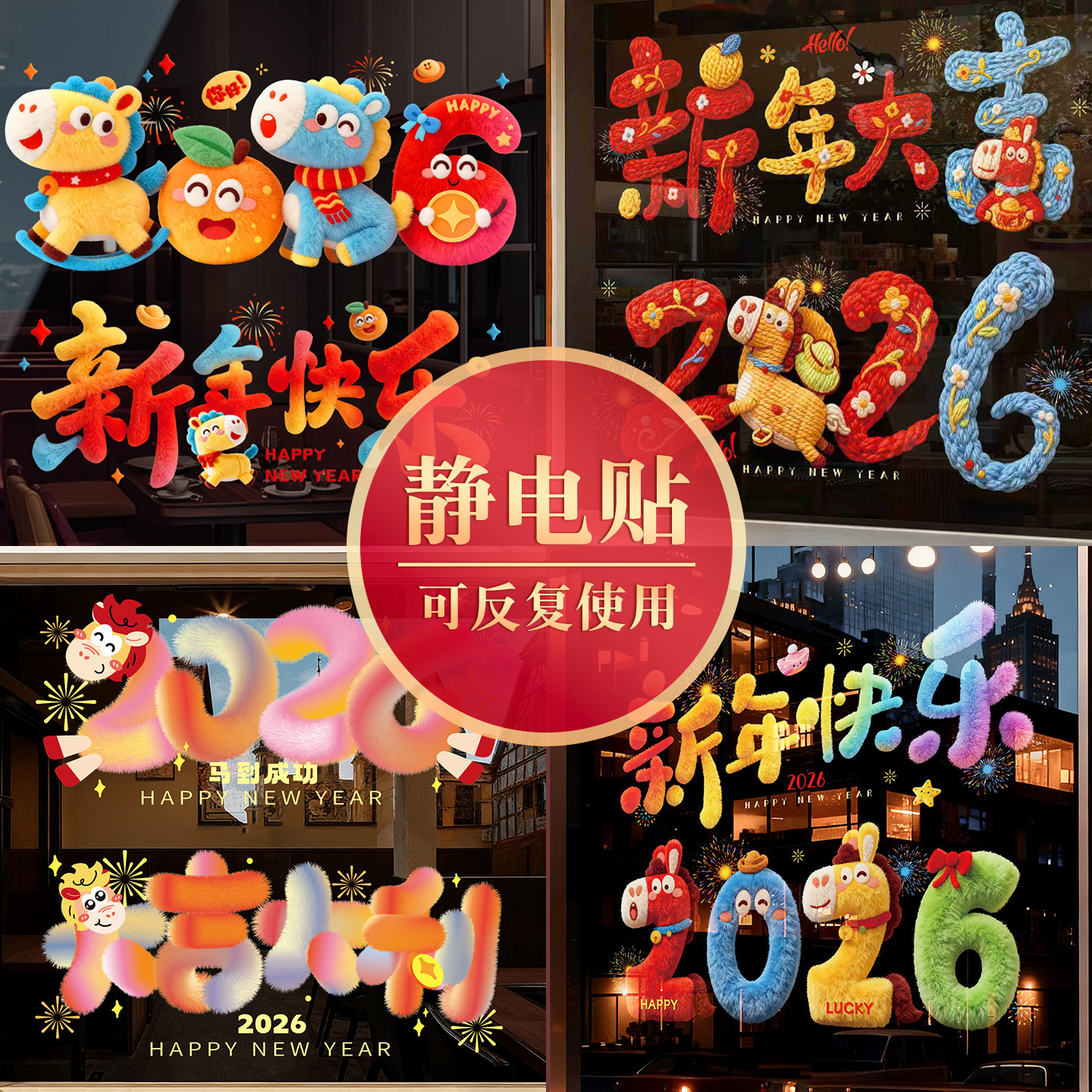 2026新款新年装饰玻璃窗贴静电贴过年福字窗花马年春节幼儿园布置