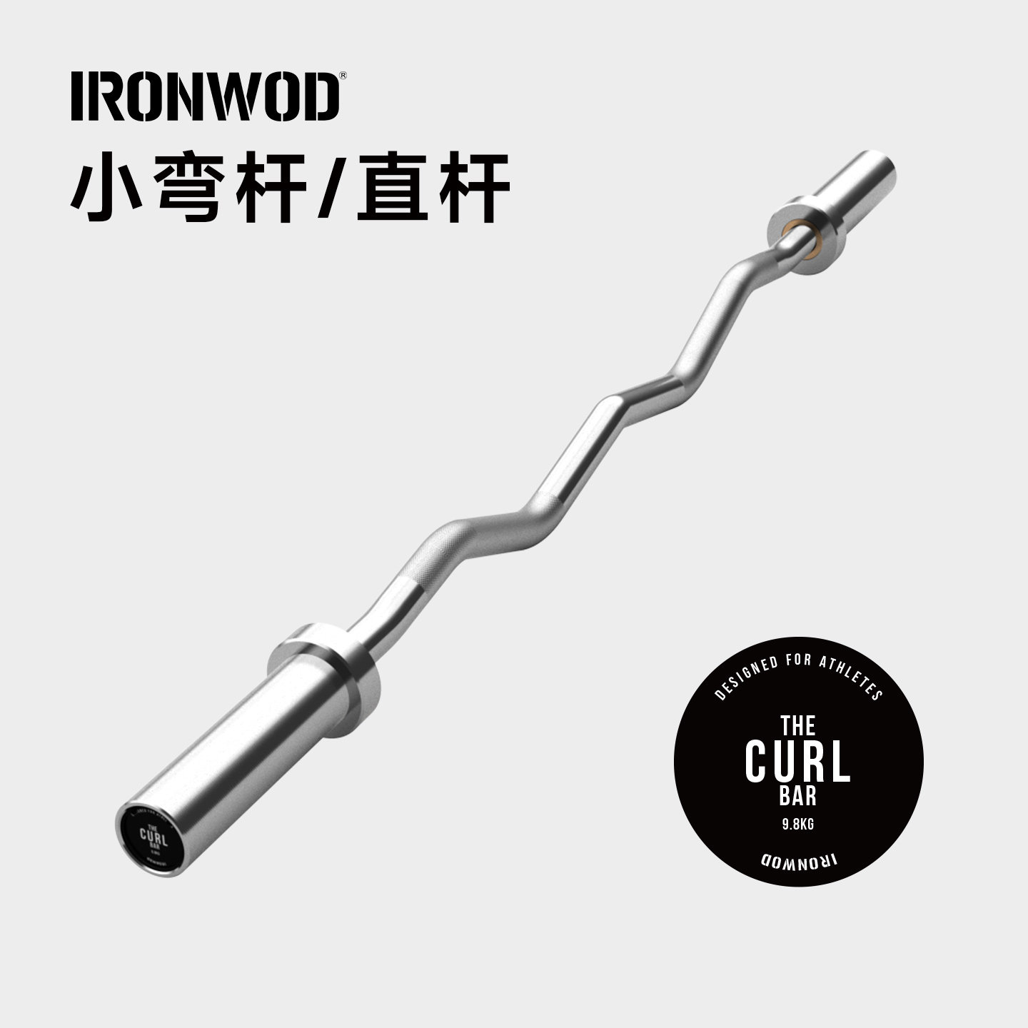 IRONWOD小弯杆杠铃杆EZ杆1.2m曲杆举重训练健身器材1.4米家用商用
