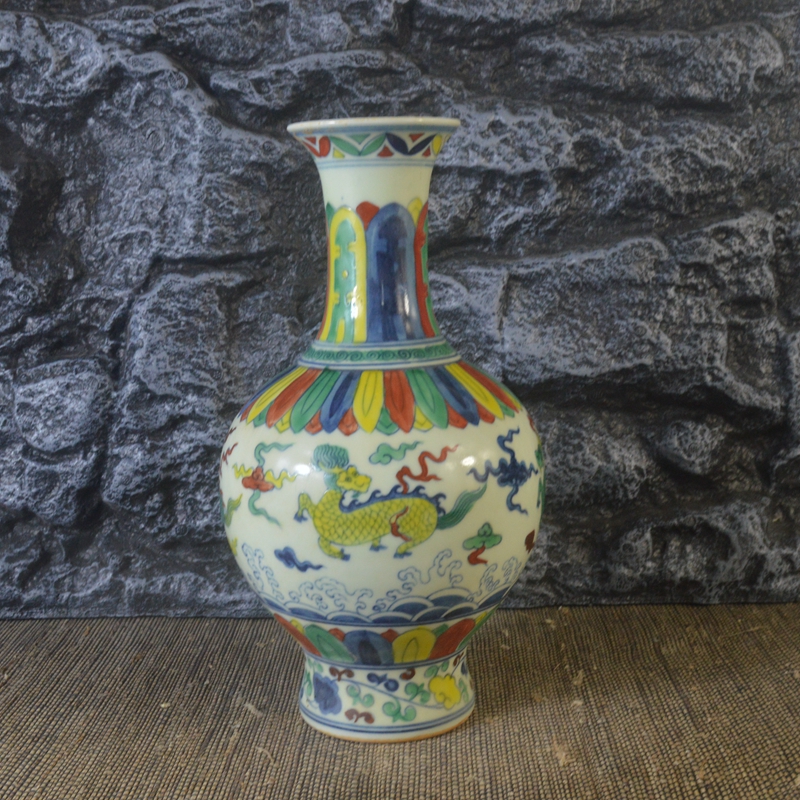 仿古瓷器 复古做旧明成化风格 斗彩神兽纹花瓶 古董古玩摆件收藏