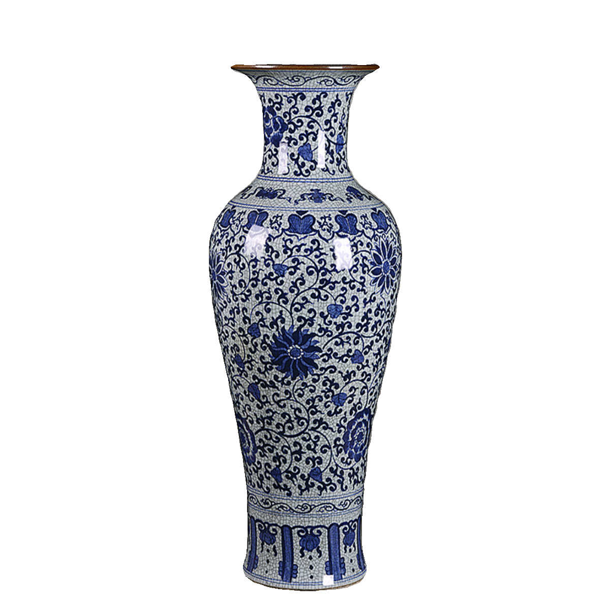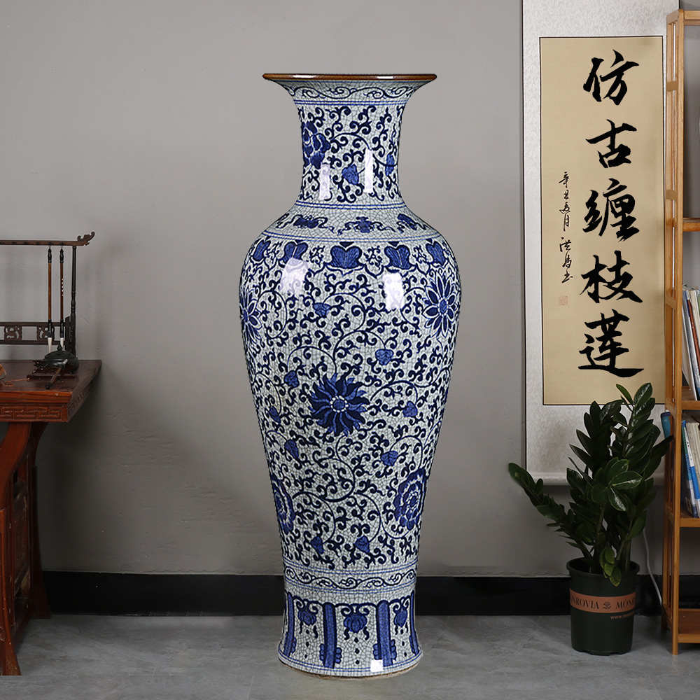 景德镇陶瓷器落地大花瓶手绘仿古做旧开片青花瓷瓶家居装饰品摆件