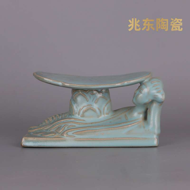 宋 汝窑天晴釉支钉贵妃枕 防宋代御制瓷器五大名窑做旧出土仿古瓷