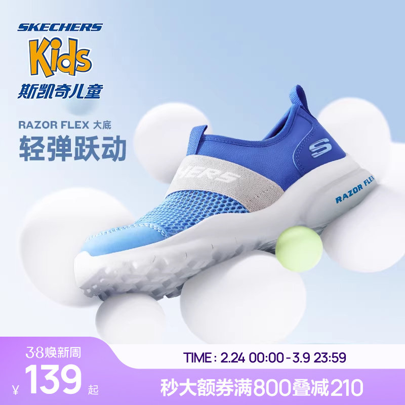 Skechers斯凯奇儿童鞋轻便运动鞋男女童一脚蹬夏季网面透气跑步鞋