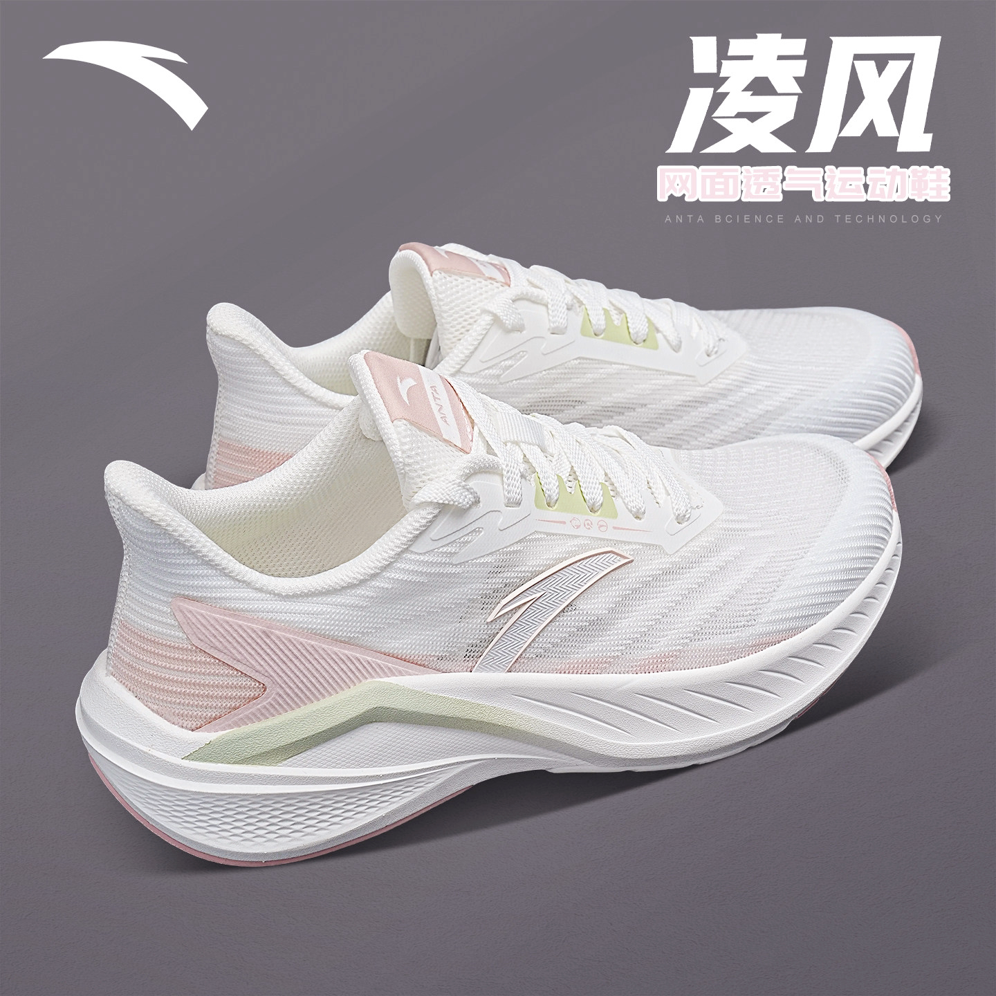安踏跑步鞋女凌风网面透气学生夏季体测训练跳绳运动鞋缓震跑鞋女