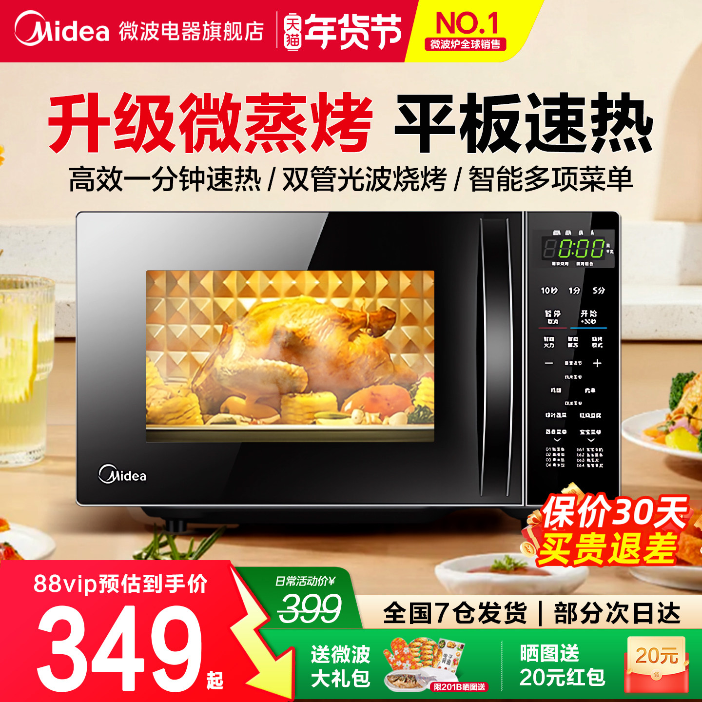 美的微波炉家用小型智能小型多功能20L平板速热微蒸烤箱正品M2C